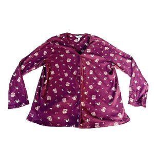 Charter Club Intimates Womens Sz XL Burgundy White Birds Button Down Pajama Top