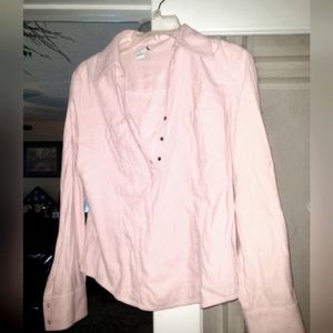Faux button up, side zipper on shirt. Light Pink, Soft brushed cotton fabric. dress it up, dress it down.