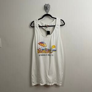 Y2K Vintage Disney 2X Mens tank top white beach Emerald Isle. NC nautical summer