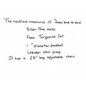 Southwest Silver tone sunburst pendant featuring a central faux turquoise stone.