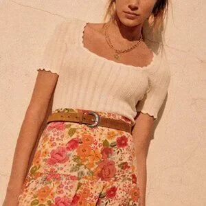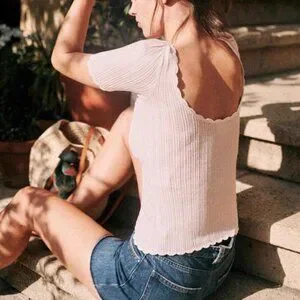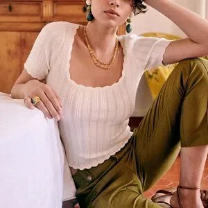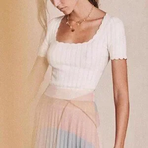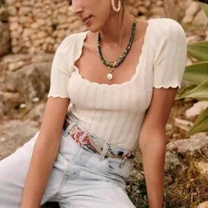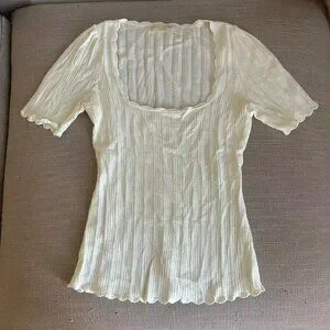 Sezane Anil Jumper Medium Ecru Cream Ivory Top Short Sleeve Sweater Knit French