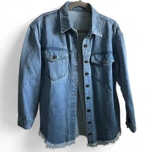 Women's Oversized Denim Jean Jacket Shacket Size Small Button Up Frayed Hem