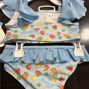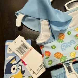 Adorable Bluey-themed swim set for kids. Features a vibrant blue color with fun character prints. Perfect for pool days and beach adventures.