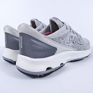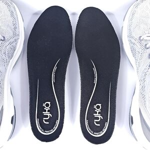 This listing is for a pair of Ryka Devotion X women’s running shoes, size 9M US, in a metallic silver colorway (style code: 901263). These are high-performance walking and fitness shoes, known for their RE-ZORB® cushioning, supportive design, and exceptional comfort tailored to the unique shape of a woman’s foot.