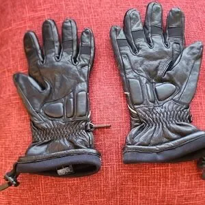 Premium black leather gloves with white embroidery. Features adjustable wrist straps for a secure fit. Iconic. Womens Large Harley-Davidson style.