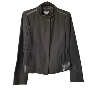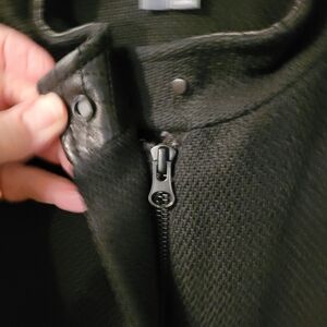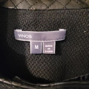 VINCE black cotton knit jacket with genuine leather trim - M. 047