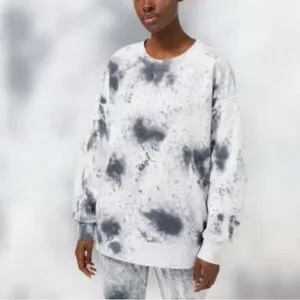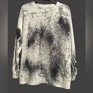 Stylish and comfortable tie dye crewneck, gray/blue and white. Perfect for casual outings or lounging at home. Or even workouts! The photos don’t do it justice, it’s a beautiful top.