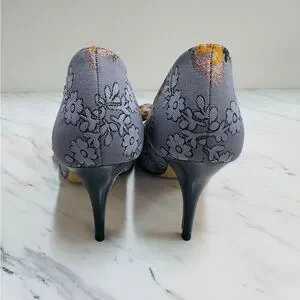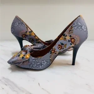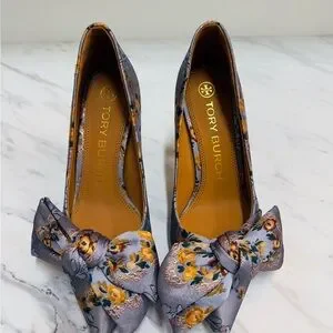 Tory Burch Floral Bow Heels in Gray and Yellow