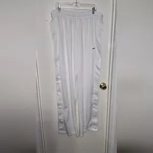 #M29 Nike White Dri-FIT Legs Pants With Side Slit & Button Details,loose Fit.