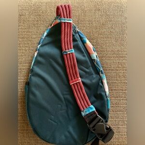 Stylish and functional KAVU sling bag for women. Features a vibrant multicolor design with a geometric pattern