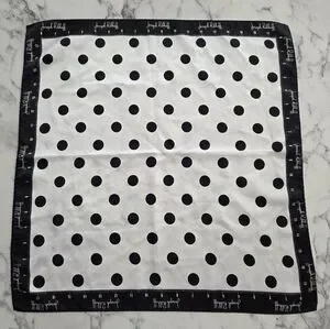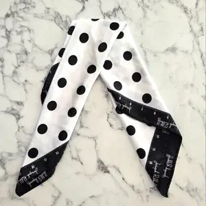 Joseph Ribkoff Satin Polka Dot Bandana Square Scarf Black White Bag Hair Scarf
