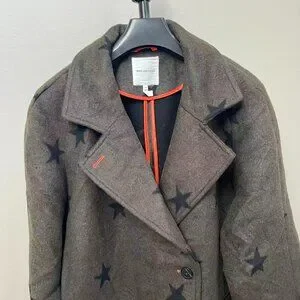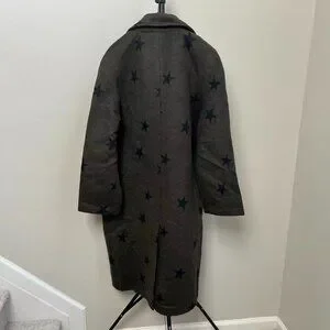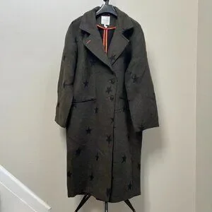 NWOT Anthropologie Wool Blend Green Star Double Face Trench Coat Olive Size M