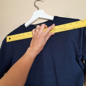 Stylish navy 3/4 sleeve tee perfect for any casual occasion. Comfortable and versatile, this top is a must-have in your wardrobe. This may be vintage because the sizing runs small. please double check your measurements to ensure best fit.