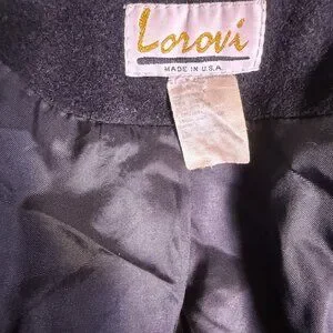 Vtg Lorovi Black Wool Coat Cape Collar Trim Elegant Overcoat Check Measurements