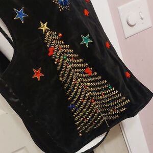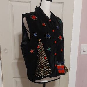 Dressbarn Festive Christmas Theme Black Ugly Vest Colorful Embroidery Size XL