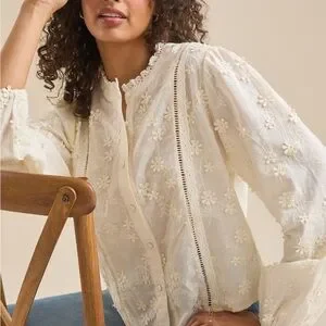 Beautiful Altard State blouse with eyelet detail and floral embroidery.