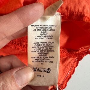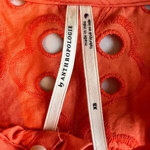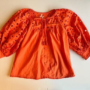 Anthropologie Vibrant Orange Puff Sleeve Eyelet Blouse Top Size XS