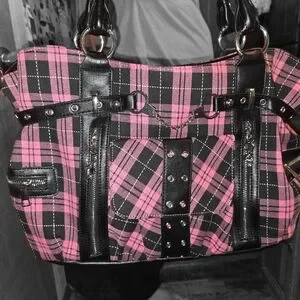 BRAND NEW~ Lost Queen Purse by *Killstar*. The perfect pink & black plaid design. lots of outside pockets & a very spacious inside with numerous pockets aswell.
