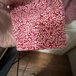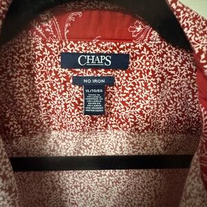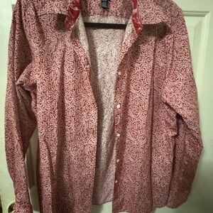 Beautiful red shirt with ditzy floral design. Features a classic collar and button front. No iron feature NWOT