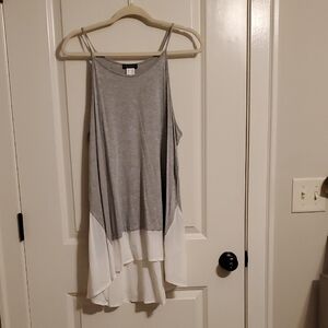 Stylish gray and white tunic with a layered design. Sleeveless and perfect for versatile wear.