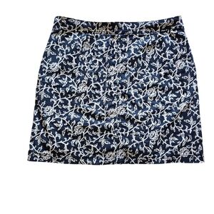 This Karen Scott skort features a chic asymmetrical design in a refreshing blue and white color palette.