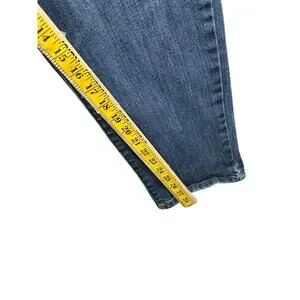 These Talbots Jeans for women in size 14 are designed for a curvy figure with a flattering fit. Made from a comfortable and stretchy denim fabric blend, they feature a classic 5-pocket straight style in a solid blue color. The medium wash and high rise give them a timeless look, while the belt loops and studded accents add a stylish touch. Perfect for all seasons, these jeans are machine washable and perfect for everyday wear. Please check Pictures for details and measurements