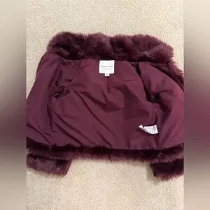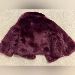 Elegant faux fur jacket in a rich plum shade. Ideal for stylish layering. Smoke free, allergy friendly dog home. Size 7/8