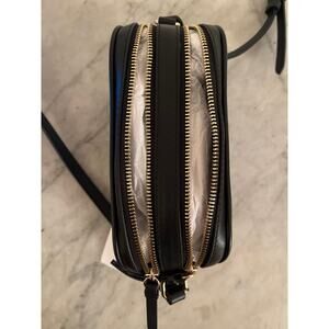 This Ted Baker London crossbody purse is in excellent, brand new condition with original tags and stuffing as pictured. Has a quality leather feel and stylish gold trim on black; perfect for fall and winter.