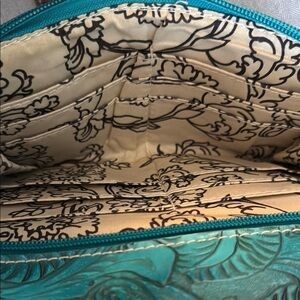Brown and Teal Embroidered foe tooled leather Women's Bag