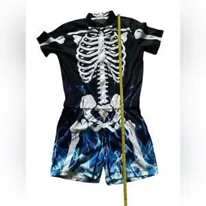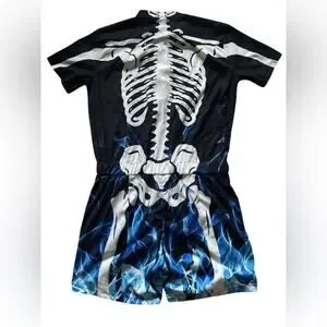 Black and blue skeleton Mens One Piece zip up romper Size XL