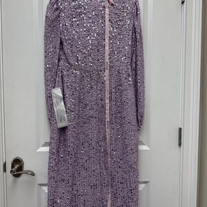 NWT Lavender long sleeve sequined midi Mac Duggal dress in size 14. Elegant choice for formal events, weddings, mother of the bride/groom. Modest, but still form fitting. Long sleeves with elastic at wrist. Runs true to size.