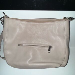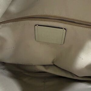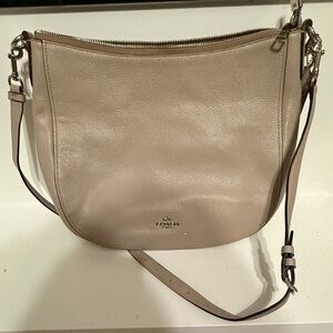 Chic Coach shoulder bag in soft beige leather. Perfect for everyday elegance. Enjoy timeless style with Coach.