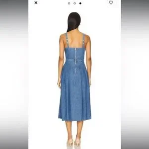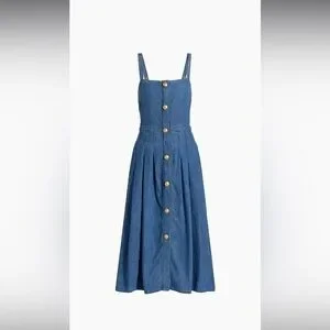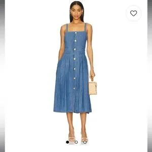 Perfect brand new with tags denim midi dress with gold buttons and pockets. Retail Price $525
