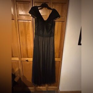 Features elegant off-shoulder design. Perfect for formal events. Flattering. Worn one time. Size 12. Forgot it was in my closet!