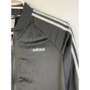 Adidas Track Jacket Women's Medium Black 3 Stripes Warmup Activewear Zip Front