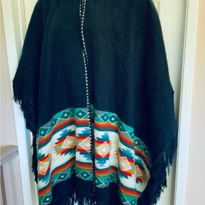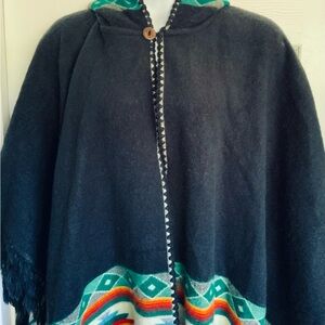 Alpaca wool cape with hood…embroidery accent throughout….1 button closure