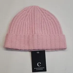 NWT C by Bloomingdale's Cashmere Ribbed Beanie Powder Pink One Size