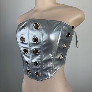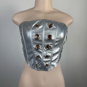 Shine in this stunning silver strapless corset top. Perfect for a night out, this top adds a touch of elegance to any outfit.