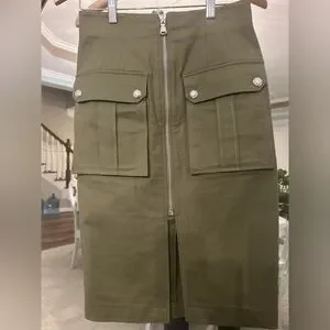 Elevate your wardrobe with this utility-chic skirt by Veronica Beard. Crafted in the signature Stone/Army green tone, this skirt blends tailored polish with functional edge — perfect for work, weekend, or travel.