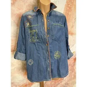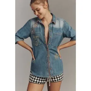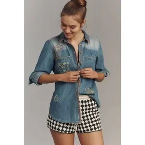 Anthropologie Pilcro Long-Sleeve Embroidered Icon Denim Buttondown Shirt