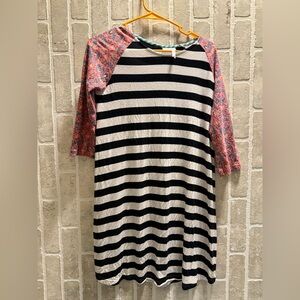 Matilda Jane Black and White Striped Dress with Pink Sleeves