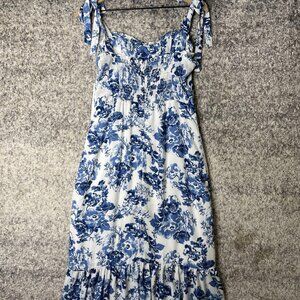 AQUA Dress Womens Medium Blue Floral Tie Strap Maxi Ruffle Hem Summer NWT