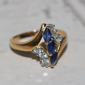 💙 Vintage Gold-Tone Ring | Size 9.5 | Marquise Blue Sapphire & Clear Stones