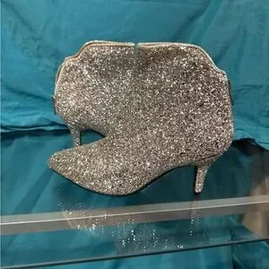 Shimmer in style with these stunning silver glitter ankle boots. Perfect for adding a touch of sparkle to any outfit.