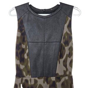 Karen Millen Camo Faux Leather Panel Skater Fit & Flare Dress Women’s Size 4