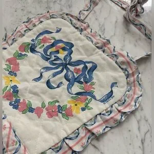 Outstanding condition! Looks to have never been used! Really neat floral design on top with blue and pink stripes on bottom.
