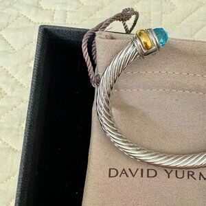 David Yurman 7mm Sterling Silver Bracelet, Blue Topaz and 14K Gold | Size Medium