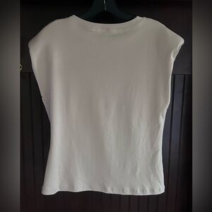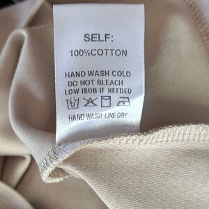 AARON & AMBER Beige Cap Sleeve Twist Blouse Top Minimalist Quiet Luxury | Size L