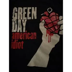 Keywords: Green Day, punk rock, music tee, graphic print, heart grenade, unisex t-shirt, American Idiot, concert wear, casual style, black t-shirt, cotton tee, short sleeve, crew neck, pre-owned, machine washable.