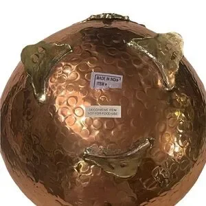 Hammered Copper Planter Ornate Brass Feet Handle Decorative Bowl Cauldron India